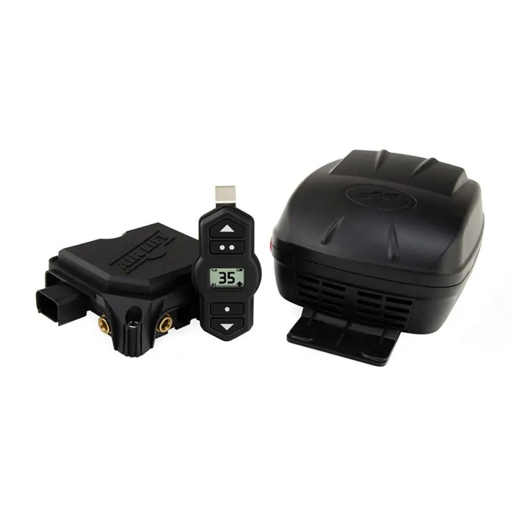 Offering easy and convenient air pressure adjustment for Air Lift air spring kits, and most other brands, the WirelessOne on-board air compressor system is ideal for those looking for in-cab control without the difficulty of running wires or airlines inside the vehicle. The system offers easy control of your air springs through a wireless handheld controller or the free mobile app.