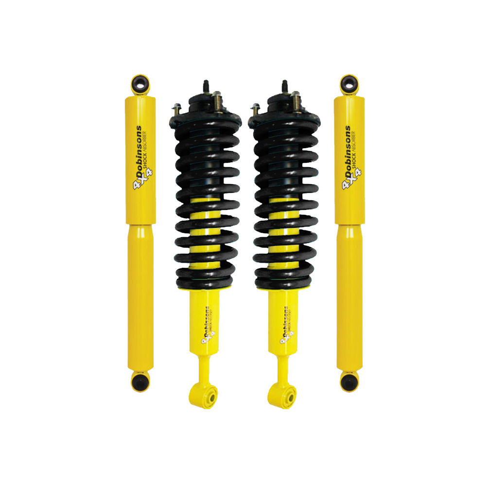 The Twin Tube Nitrogen Gas charged shock absorbers are made from the world's highest quality external and internal parts sourced worldwide. They provide a significant increase in performance over the standard shock absorbers. The twin tube shock absorbers feature larger bodies, larger bores and increased valving performance to dramatically improve vehicle handling and control and reduces shock fade. All Dobinsons' coil springs are load tested and scragged 100% to eliminate subsequent spring sag.