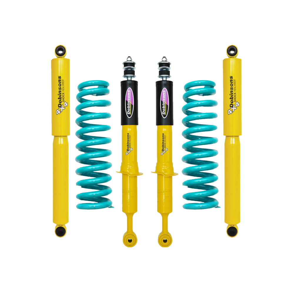 The Twin Tube Nitrogen Gas charged shock absorbers are made from the world's highest quality external and internal parts sourced worldwide. They provide a significant increase in performance over the standard shock absorbers. The twin tube shock absorbers feature larger bodies, larger bores and increased valving performance to dramatically improve vehicle handling and control and reduces shock fade. All Dobinsons' coil springs are load tested and scragged 100% to eliminate subsequent spring sag.