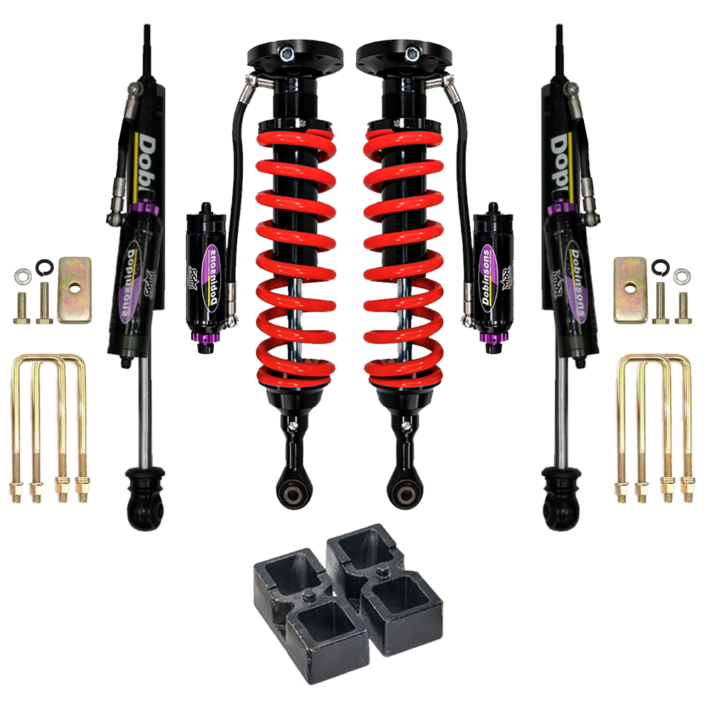 Dobinsons offers this complete suspension system for the 2005-2023 Toyota Tacoma, with various lift height and load options to suit whatever accessory weight you have added to your vehicle, and your desired lift height.