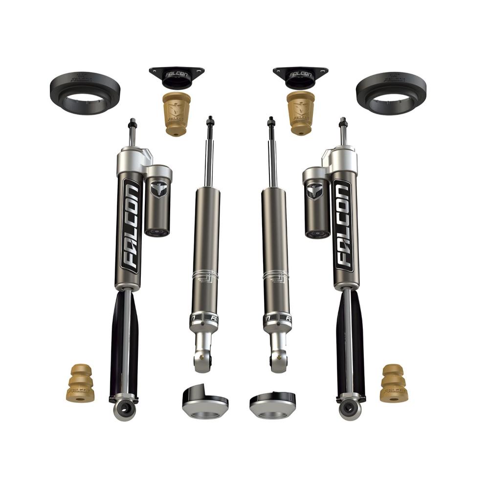 Falcon Performance Shocks are engineered to deliver enhanced ride quality and control, no matter the terrain. The Sport Shock Systems feature front monotube shocks paired with either rear monotube or piggyback options, offering the perfect balance for daily driving and off-road adventure. Compact, affordable, and vehicle-specific, these shocks are built to perform.