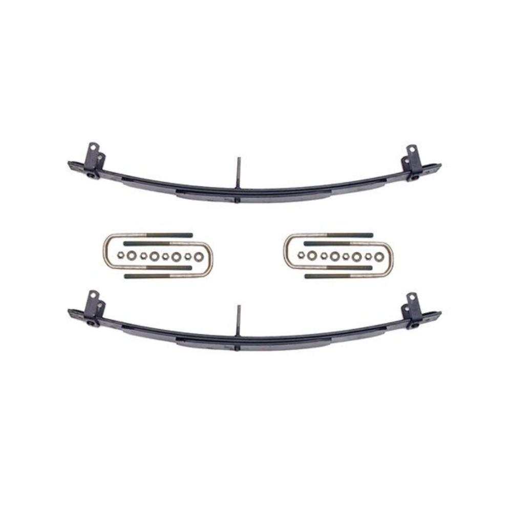 Installing in place of the factory overload leaves, this kit effectively lowers the rear spring rate by approximately 10% for a more compliant ride. This three-leaf progressive rate Add-A-Leaf Kit comes complete with U-bolts and center pins for an easy install. This kit will give your Tacoma or Tundra 1.5 inches of lift after installation. Simply remove the factory overload spring, bolt up the kits, and say goodbye to that rough factory ride.